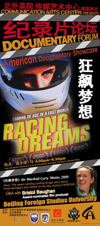 RACING DREAM Seminar–part of CAC’s DOCUMENTARY FORUM Guest speaker: Oscar nominated producer Bristol Baughan and Martha Fost, Film Executive of LETV. Event partly sponsored by American Embassy